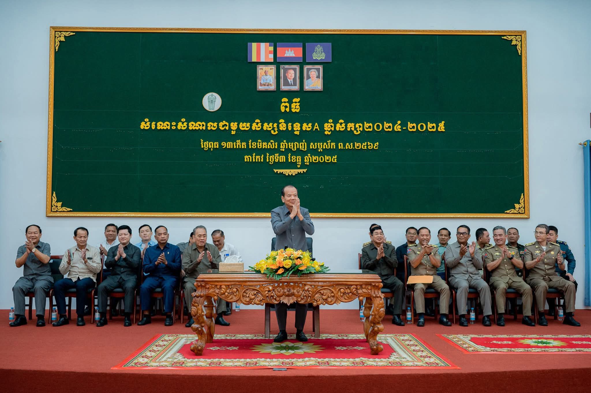 តាកែវ៖ នាព្រឹកថ្ងៃពុធ ទី០៣ ខែធ្នូ ឆ្នាំ២០២៥ ឯកឧត្តម វ៉ី សំណាង អភិបាល នៃគណៈអភិបាលខេត្តតាកែវ និងថ្នាក់ដឹកនាំ រដ្ឋបាលខេត្ត បានអញ្ជើញចូលរួមក្នុងពិធីជួបសំណេះសំណាលជាមួយ អាណាព្យាបាល និងសិស្សជ័យលាភី និទ្ទេស A ចំនួន ១៧៨នាក់ ក្នុងឆ្នាំសិក្សា ២០២៤-២០២៥ មកពីតាមបណ្ដាវិទ្យាល័យស្រុកក្រុង នៅខេត្តតាកែវ ស្ថិតក្រោមអធិបតីភាព ឯកឧត្តម បណ្ឌិត ជា វ៉ានដេត រដ្ឋមន្រ្តីក្រសួងប្រៃសណីយ៍ និងទូរគមនាគមន៍ និងជាប្រធានក្រុមការងាររាជរដ្ឋាភិបាលចុះមូលដ្ឋានខេត្តតាកែវ ។
