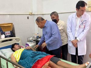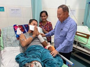 សម្តេចភក្តី សាយ ឈុំ អនុប្រធានគណបក្សប្រជាជនកម្ពុជា បានអញ្ជើញចុះសាកសួរសុខទុក្ខវីរកងទ័ពសមរភូមិមុខ មកពីទិសព្រះវិហារ និងឧត្តរមានជ័យ ចំនួន៤រូប ដែលរងរបួសដោយការវាយប្រហាររបស់កងទ័ពថៃឈ្លានពាន ដែលកំពុងសម្រាកព្យាបាលនៅមន្ទីរពេទ្យមិត្តភាពខ្មែរ-សូវៀត។
