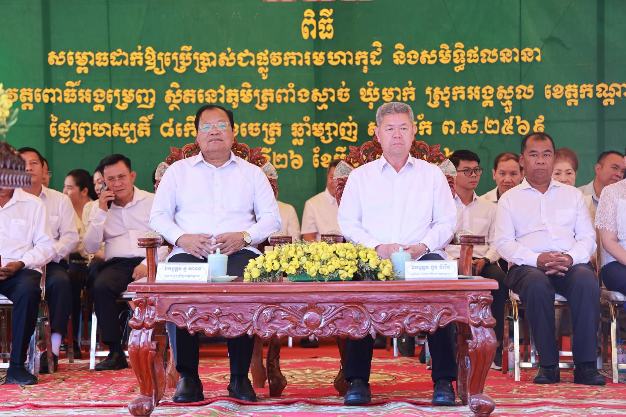 ខេត្តកណ្ដាល៖ នៅព្រឹកថ្ងៃទី២៦ ខែមីនា ឆ្នាំ២០២៦ ឯកឧត្ដម នូ សាខន ប្រធានក្រុមប្រឹក្សាខេត្តកណ្ដាល និងឯកឧត្ដម គួច ចំរើន អភិបាល នៃគណៈអភិបាលខេត្តកណ្ដាល អញ្ជើញជាគណៈធិបតីក្នុងពិធីសម្ពោធដាក់ឱ្យប្រើប្រាស់ជាផ្លូវការ មហាកុដិ និងសមិទ្ធផលនានា ក្នុងវត្តពោធិ៍អង្គម្រេញ ស្ថិតនៅភូមិត្រពាំងស្មាច់ ឃុំម្កាក់ ស្រុកអង្គស្នួល ខេត្តកណ្ដាល។ ដែឡពិធីនេះមានការអញ្ជើញចូលរួមពីសំណាក់ ឯកឧត្តម លោកជំទាវ សមាជិកក្រុមប្រឹក្សាខេត្ត កងកម្លាំងទាំងបី មន្ទីរ-អង្គភាពជុំវិញខេត្ត អាជ្ញាធរស្រុកអង្គស្នួល លោកគ្រូ អ្នកគ្រូ សិស្សានុសិស្ស និងប្រជាពលរដ្ឋ ជាច្រើននាក់។